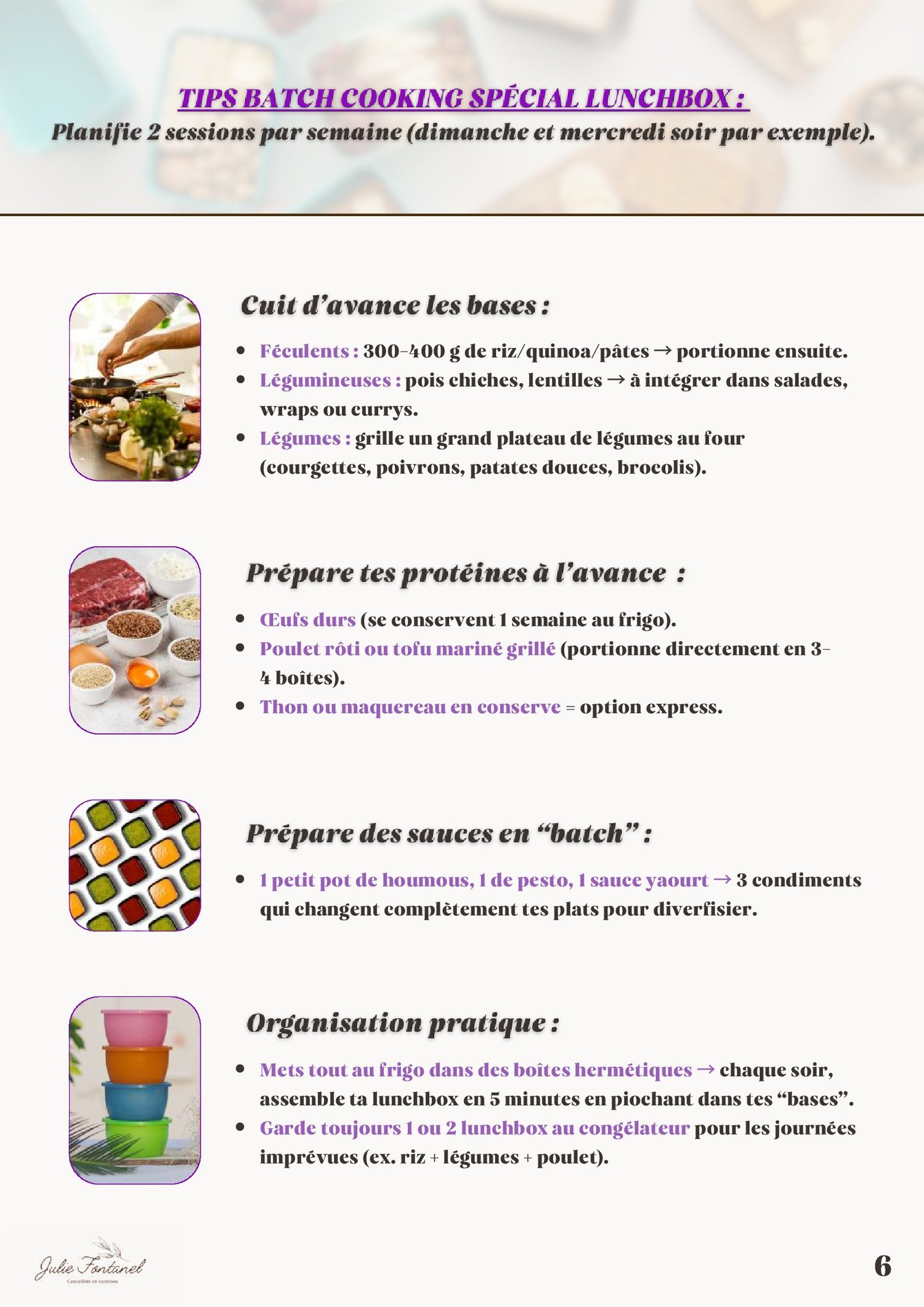 Parce qu’il allie organisation + plaisir + équilibre. Tu n’auras plus jamais à chercher quoi manger le midi, ni à céder au fast-food par manque d’idées.