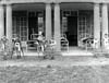 A staged photo showing some boys in bed on the veranda and other boys standing in a plaster Thomas splint, mainly using crutches. The child’s unaffected leg was fitted with a patten to stop the child from inadvertently putting weight on the tubercula joint. One boy has his arm in plaster.