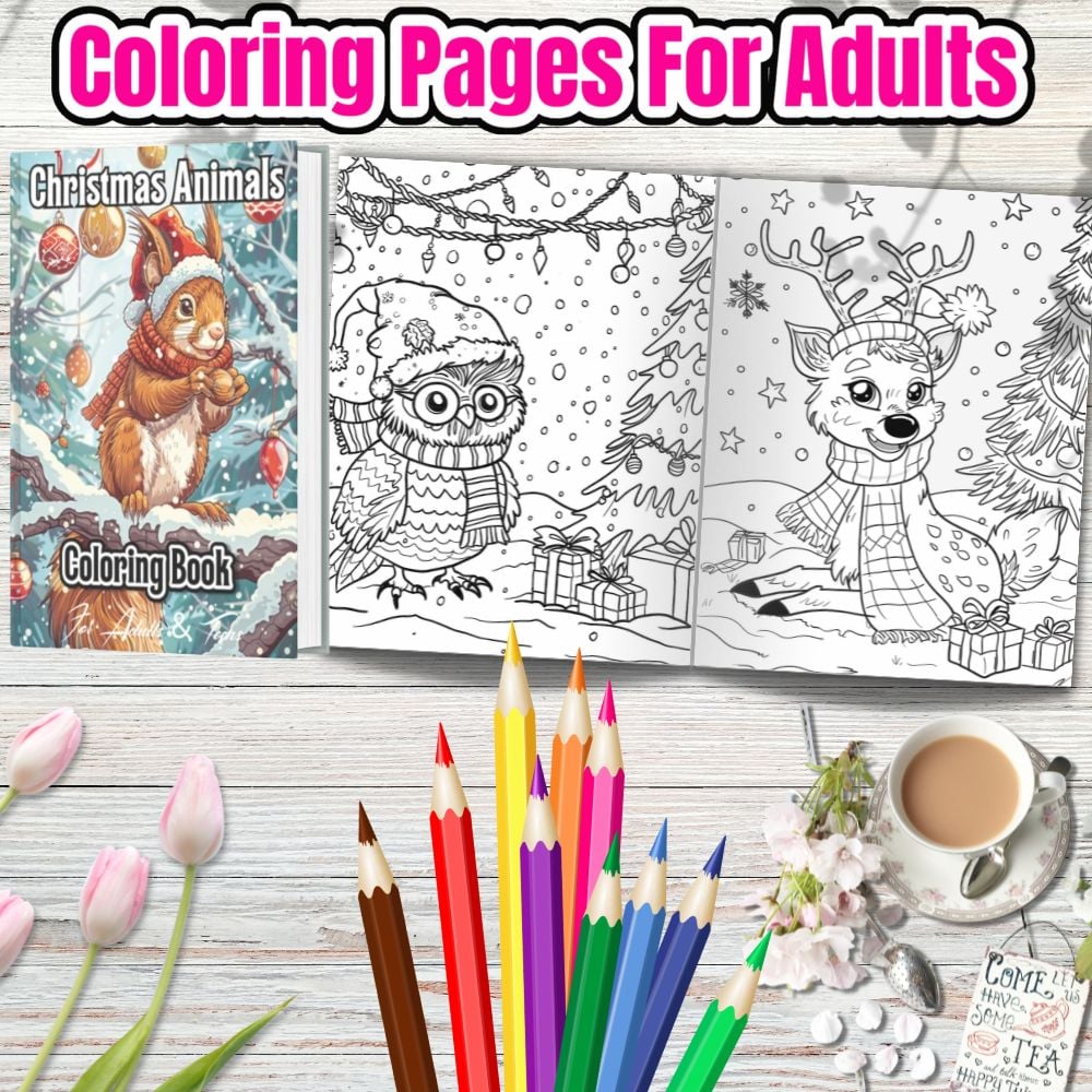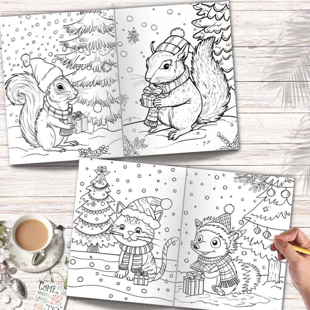 - 120 Unique Pages of adorable Christmas-themed animal designs.