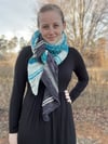 For my DK weight sample (the main sample), I used Hand Dyed Diva DK in Raven Wing, Swim Up Bar, and Turquoise & Sterling.