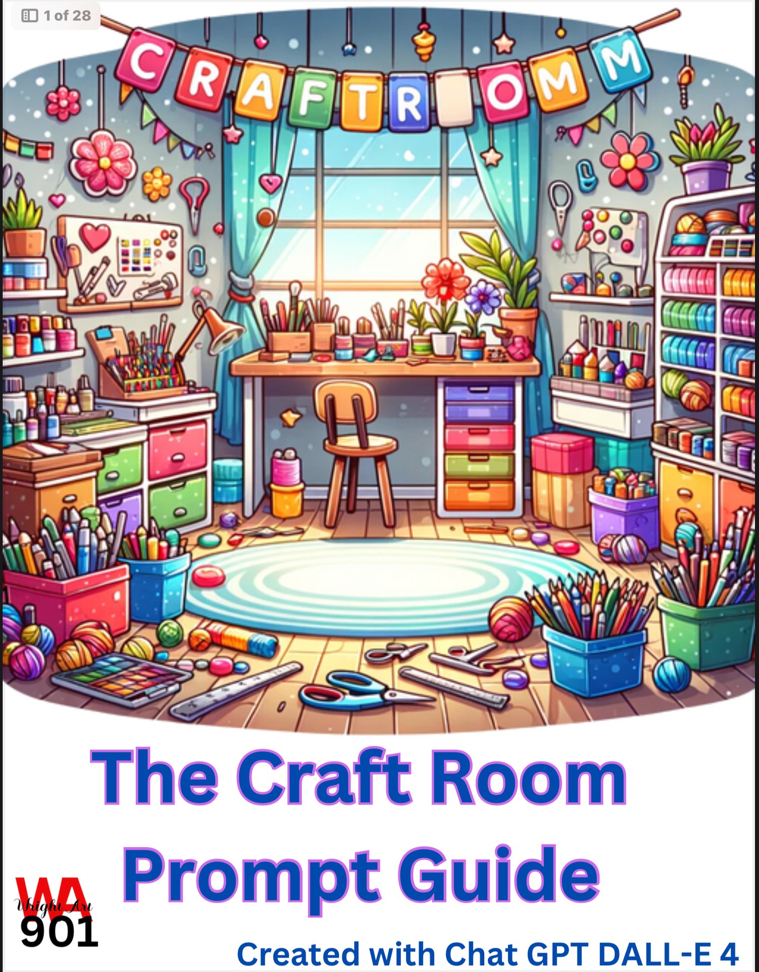 In this file you will receive a prompt book with 20 craft room ideas. Also included are the prompts used to generate the images in Chat GPT 4. You must have CHAT GPT 4 to have the images close to resembling the images in the book. You are free to use the prompts in other ai generators but results may vary.