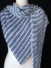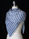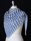 Inspired by the interrupted stripe patterns that emerge from the Arashi technique of Shibori dying, this asymmetrical triangular shawl is completely reversible with a dark side and a light side that are equally attractive. It can easily be made larger or smaller by simply repeating the pattern rows more or fewer times.