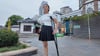 Mila: Ooe, the amputee girl, walking alone by the river with crutches.