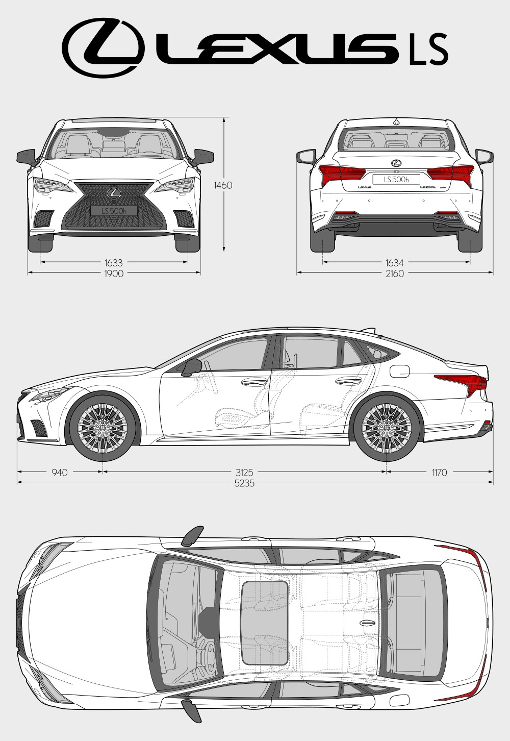 Lexus LS Car Blueprint PDF SVG Vector Drawing.