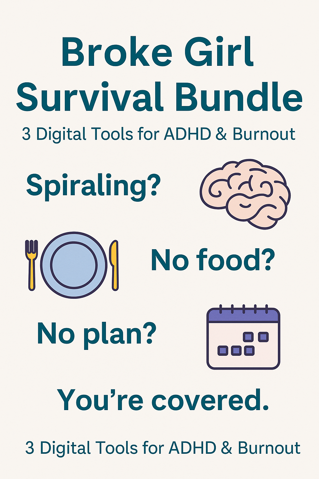 This is a digital download bundle made for those of us trying to survive the day while broke, overwhelmed, and expected to function.