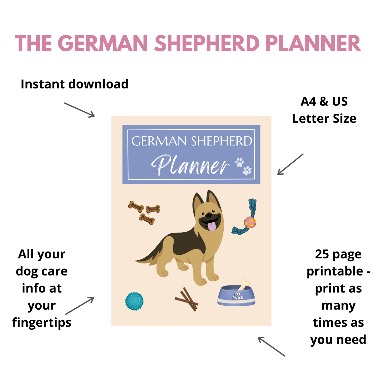 German Shepherd Dog Planner β 25-Page Printable Pet Care Organizer (US Letter + A4)