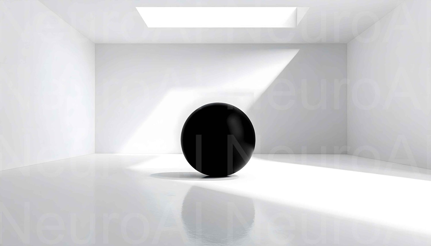 Black Ball in Minimalist White Room Contrast, Space, and Focus