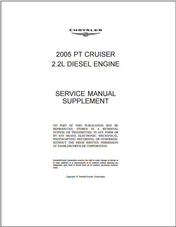 2005 Chrysler Pt Cruiser Service Manual Plus Diesel Engine Supplement Service Manual
