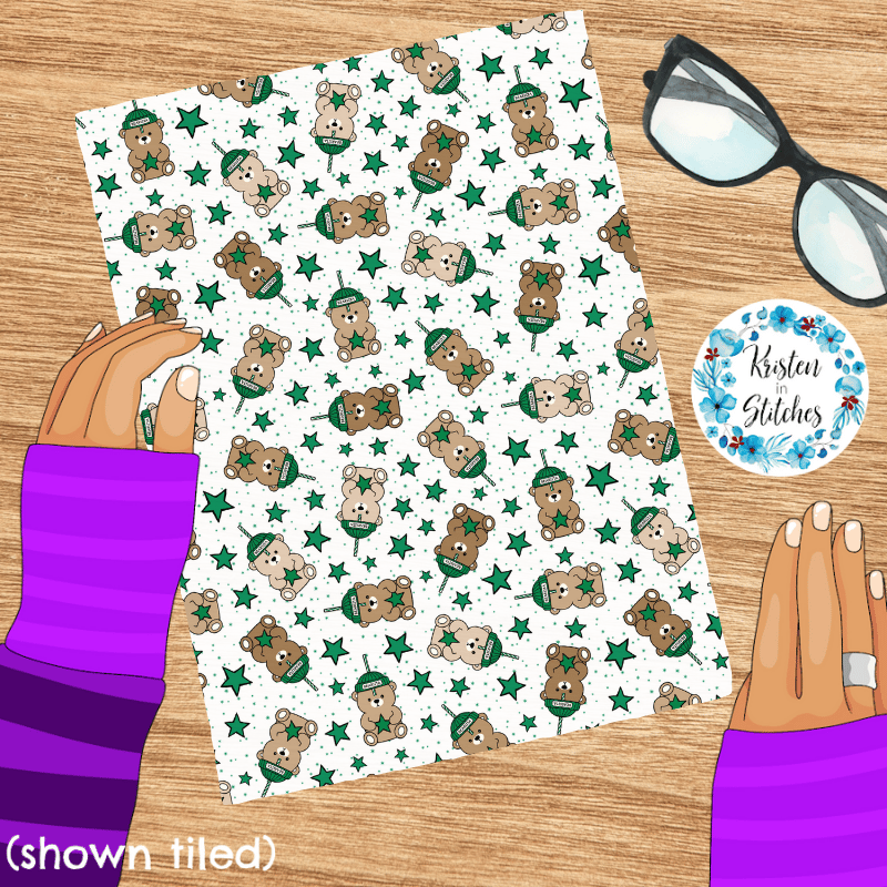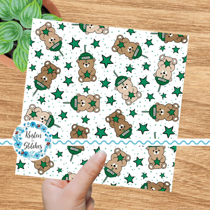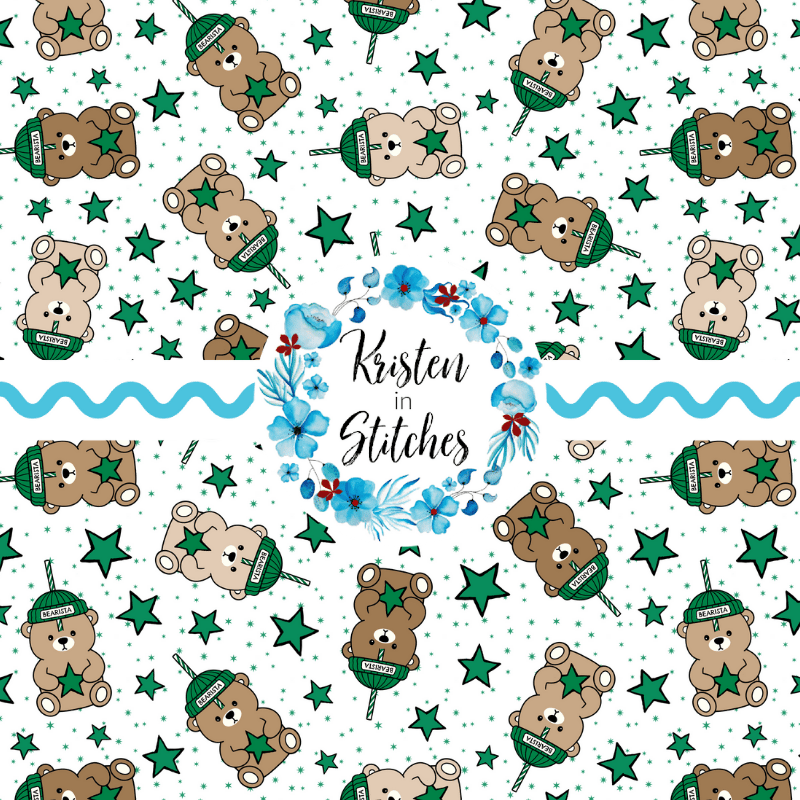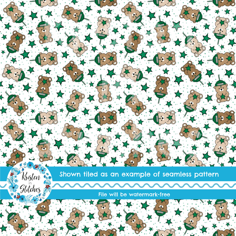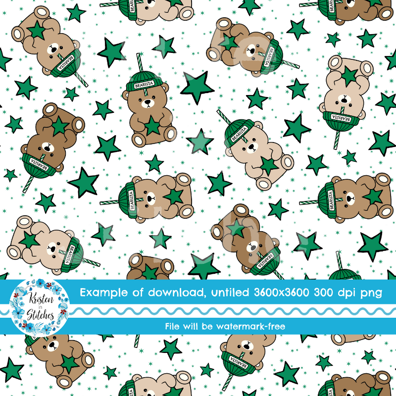 Bearista Bear Iced Coffee Glass Cups Seamless Pattern