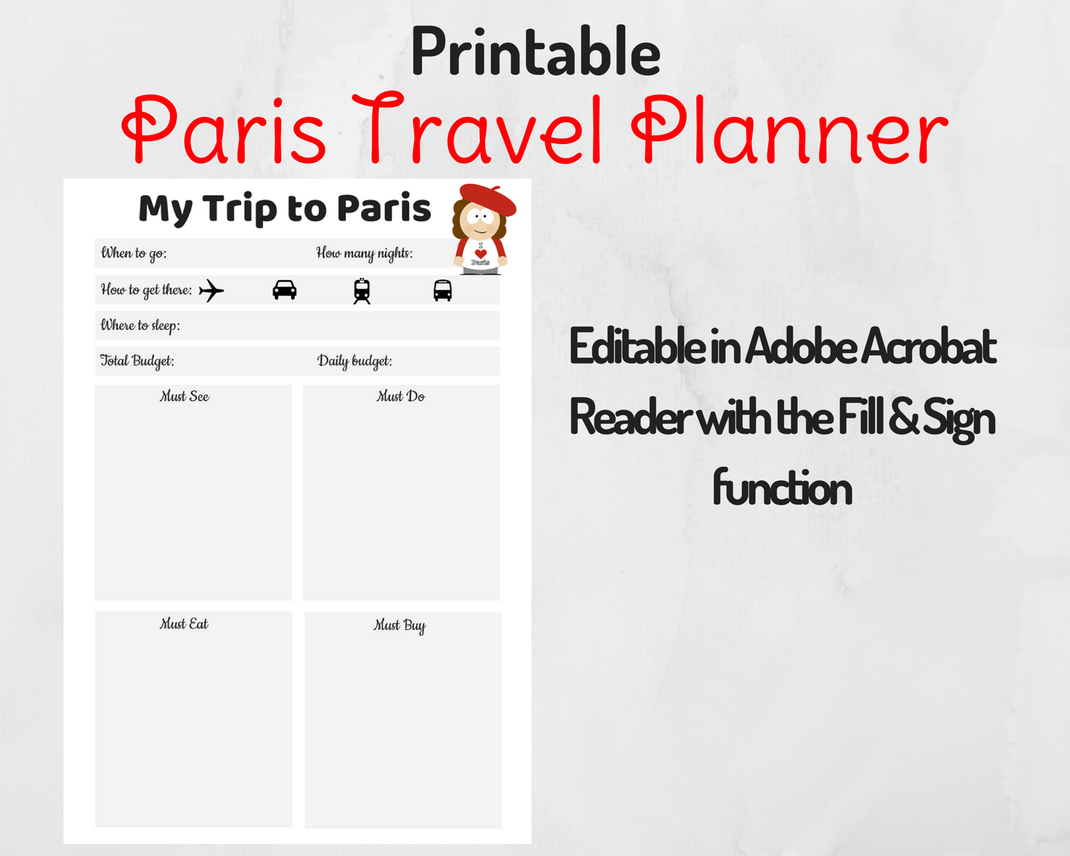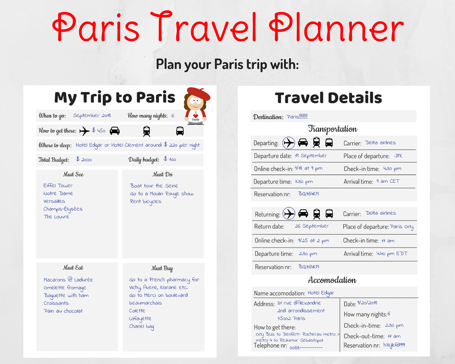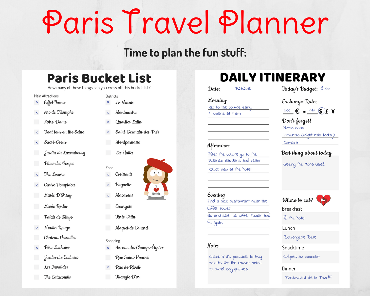 Printable Paris Travel Planner