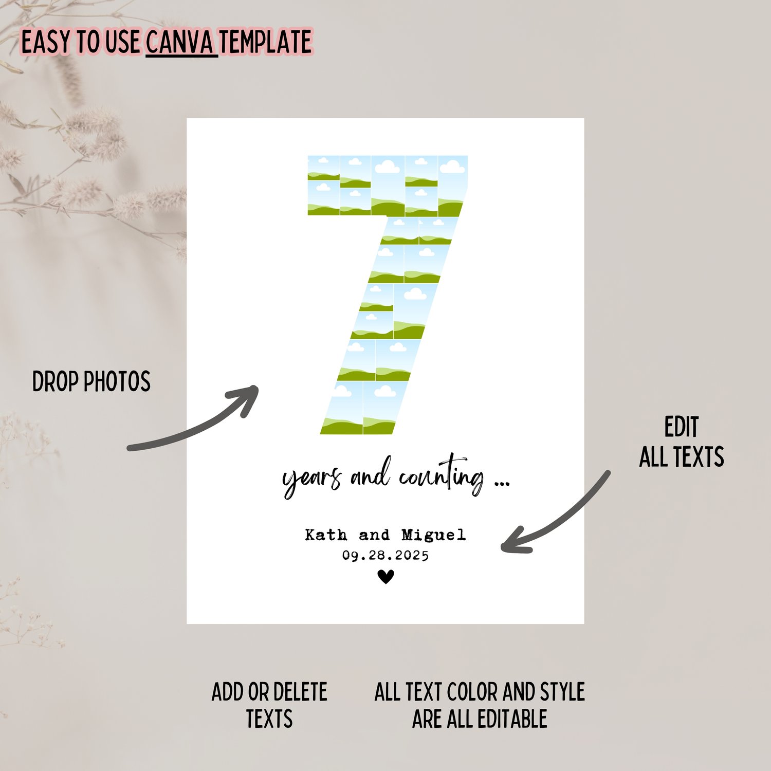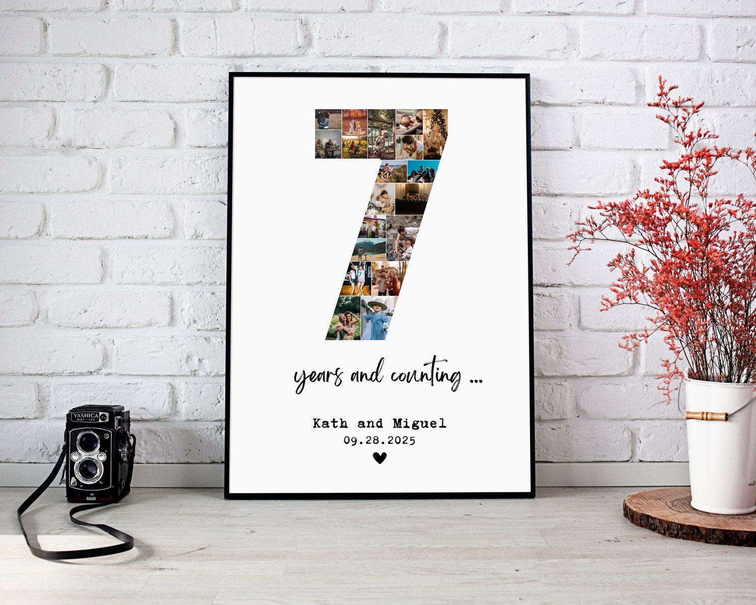 DIGITAL Custom 7 year Anniversary Photo Collage, 7th Anniversary Gift For Boyfriend, Number Collage, 7th Birthday