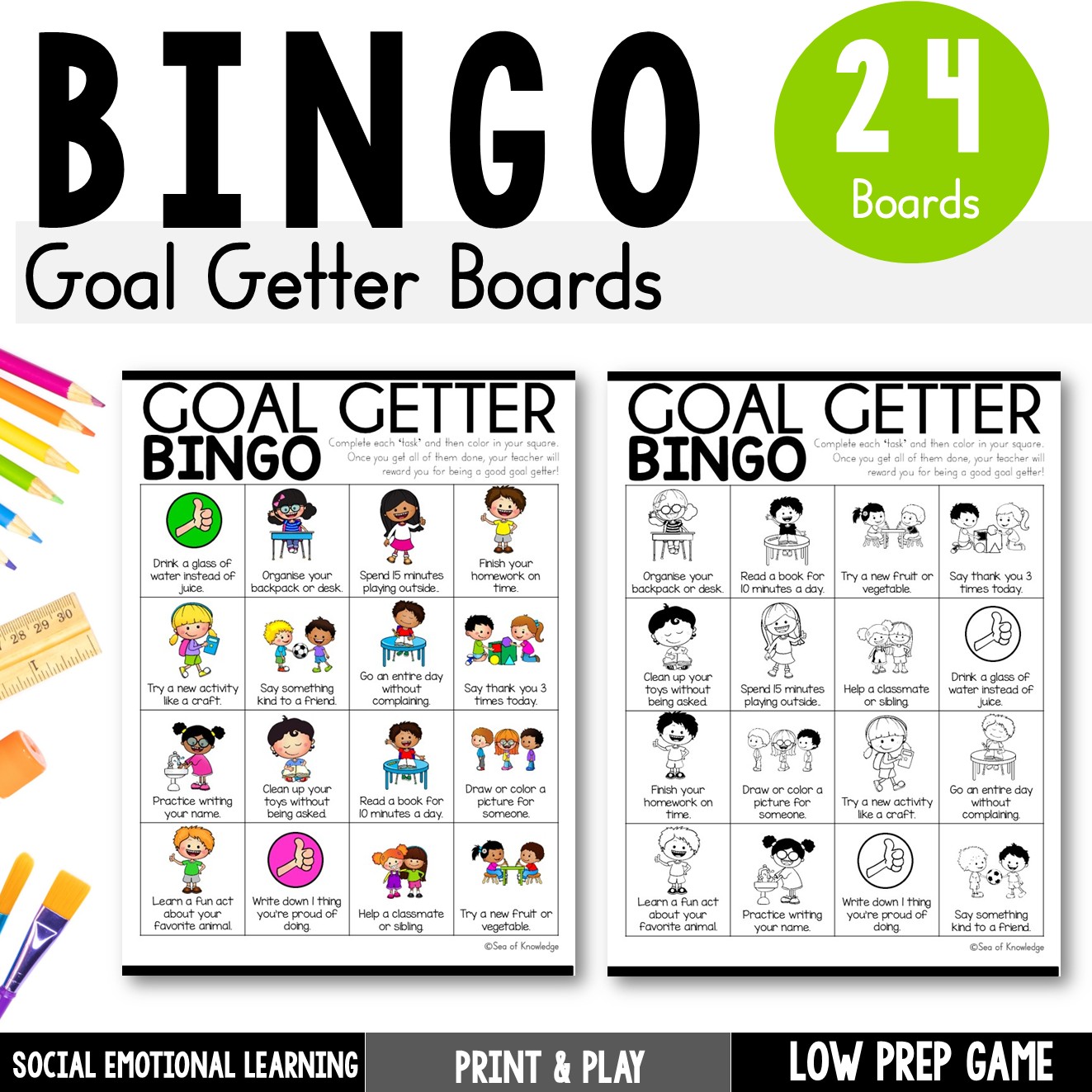 Make goal setting a part of your Winter SEL lessons with this engaging Goal Setting Bingo Challenge! Perfect for promoting social-emotional learning, this printable activity includes 20 unique bingo sheets filled with fun themed goal challenges for kids to complete.
