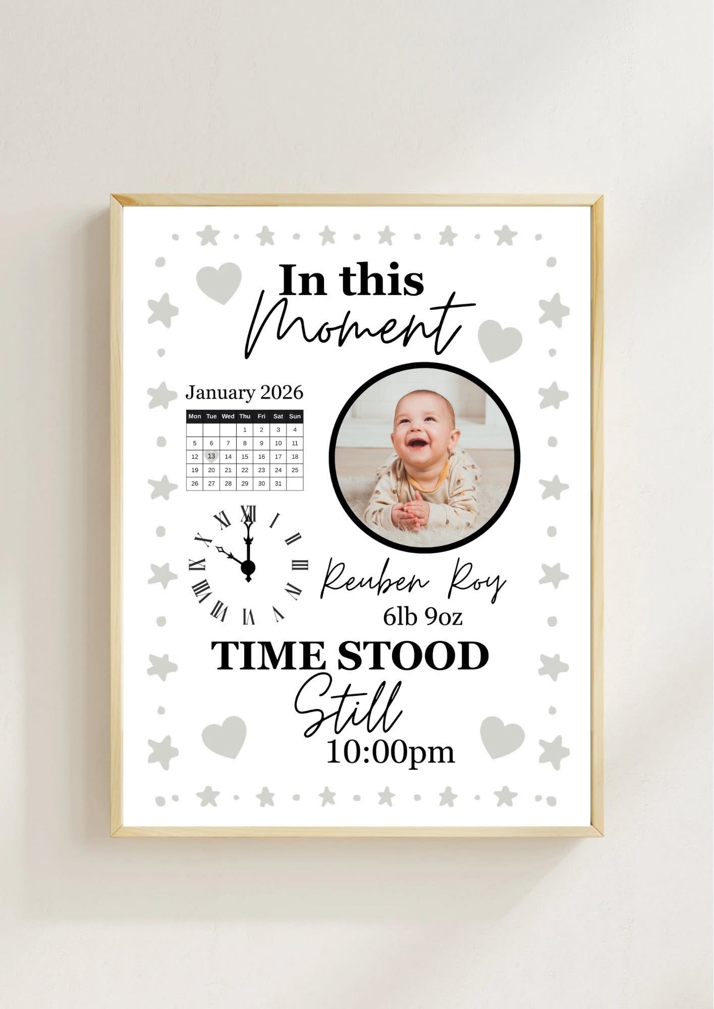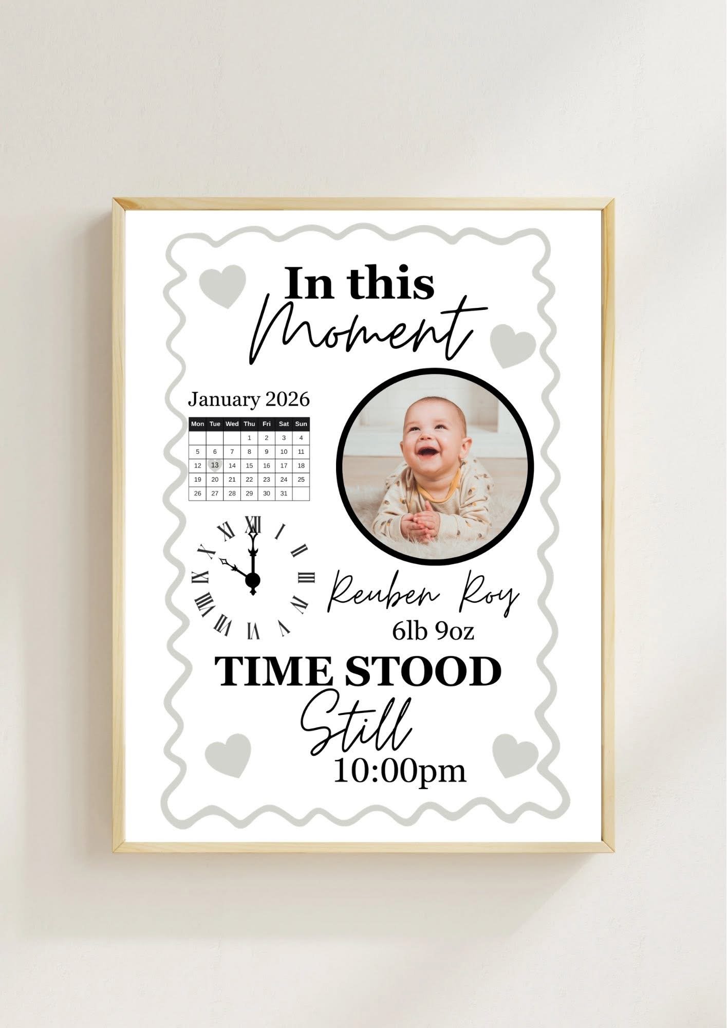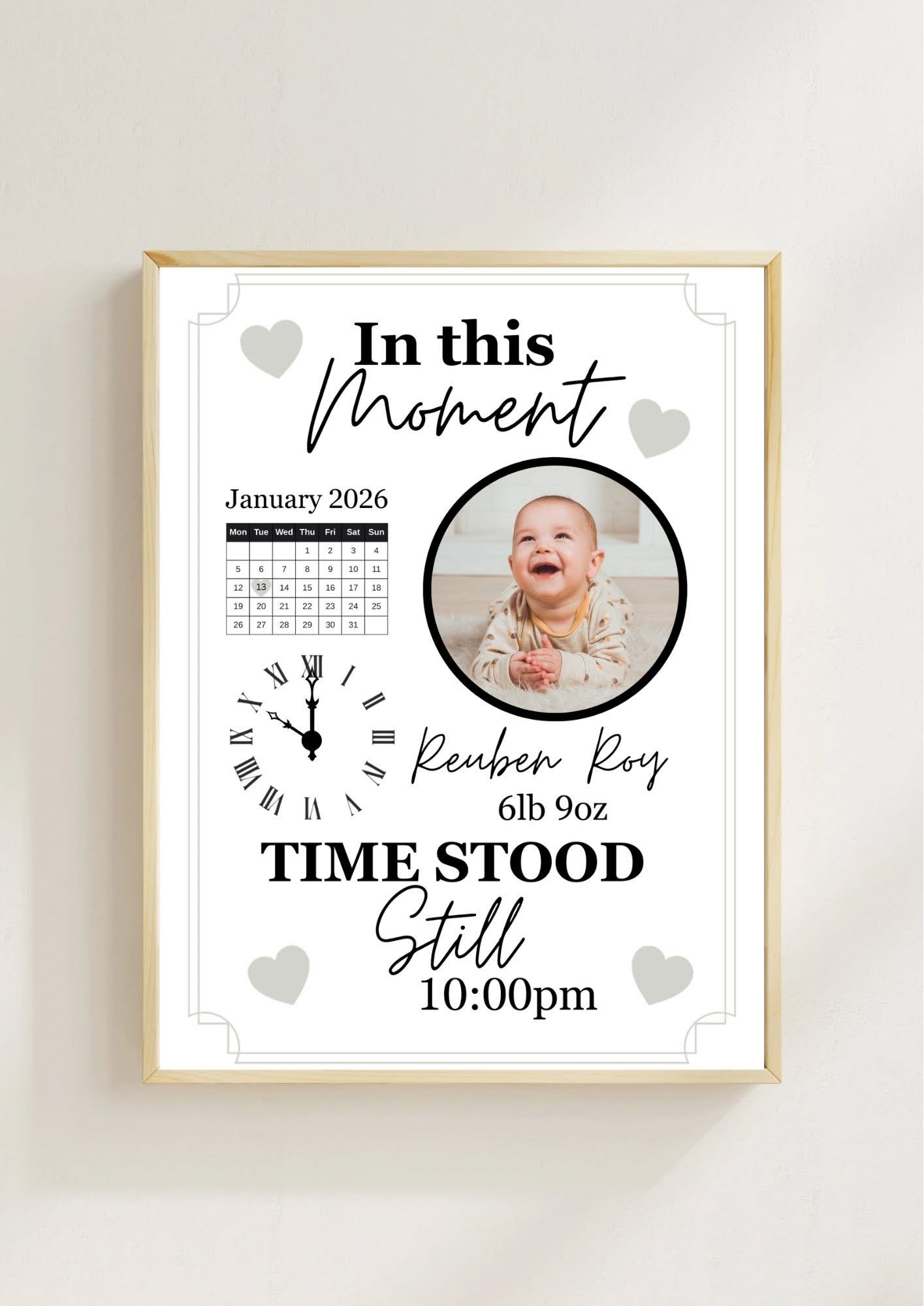 Create beautiful, personalised keepsake prints with this set of 4 coordinating “In This Moment” wall art designs – ideal for baby announcements, nursery decor, christening gifts, and memory frames.