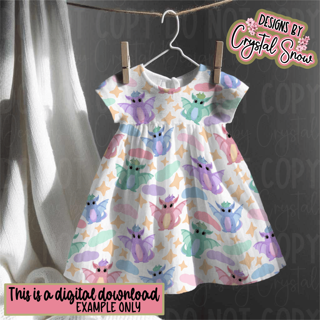 Cute Baby Dragon Seamless Pattern | Fantasy Kawaii Digital Paper | Kids Room Fabric | Magical Dragon Cliparte | Fairycore Fantasy PNG for Sublimation, Planners & Crafts