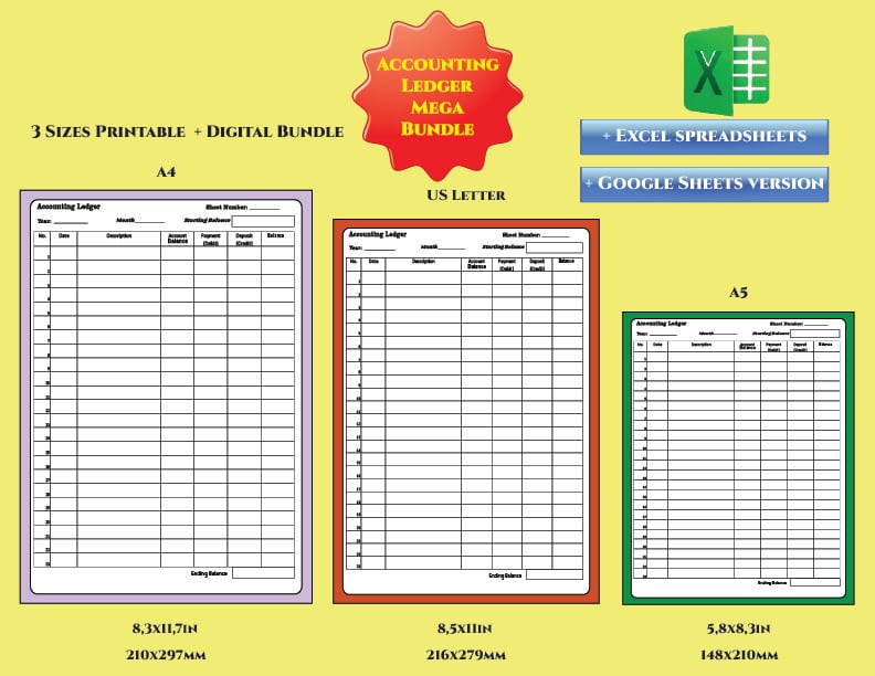 This all-in-one accounting template bundle helps you track income, expenses, balances, receipts, and yearly summaries β whether you prefer paper planning or digital spreadsheets.