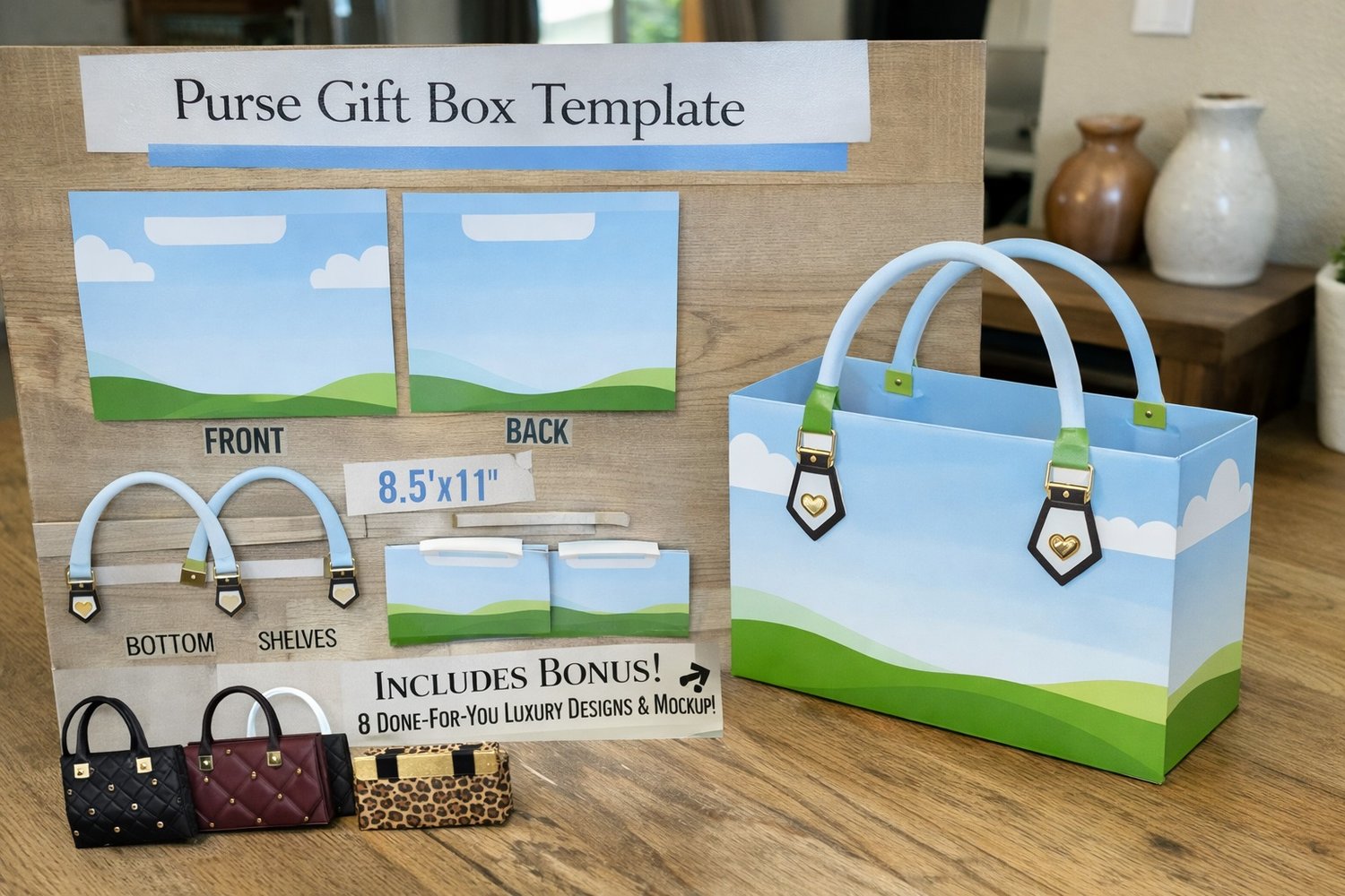 Purse Gift Box Template | Luxury Party Favor Packaging (Canva Editable, Printable 8.5x11")