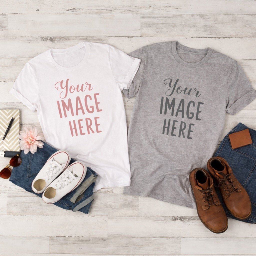 Couples T-Shirt Mockup Bundle | His & Hers Shirt Photos | Farmhouse, Edgy, Minimal & Fun Styles