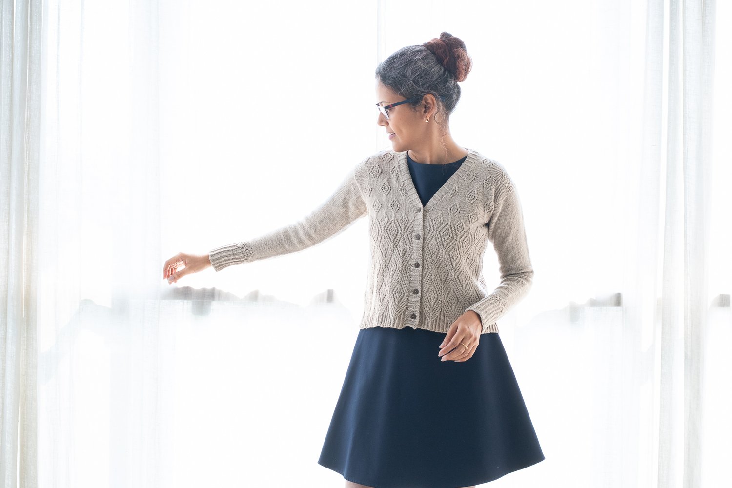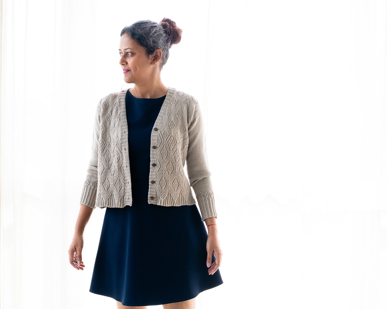 Notions: Depending on size, at least 15-28 stitch markers for chart reps and 5-7 buttons of 0.5” / 1.25 cm diameter.