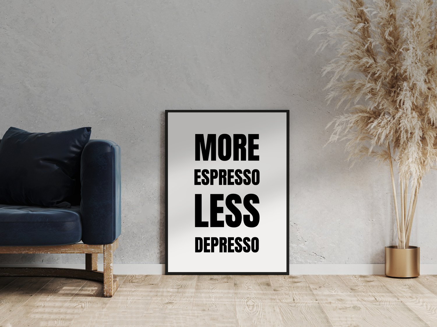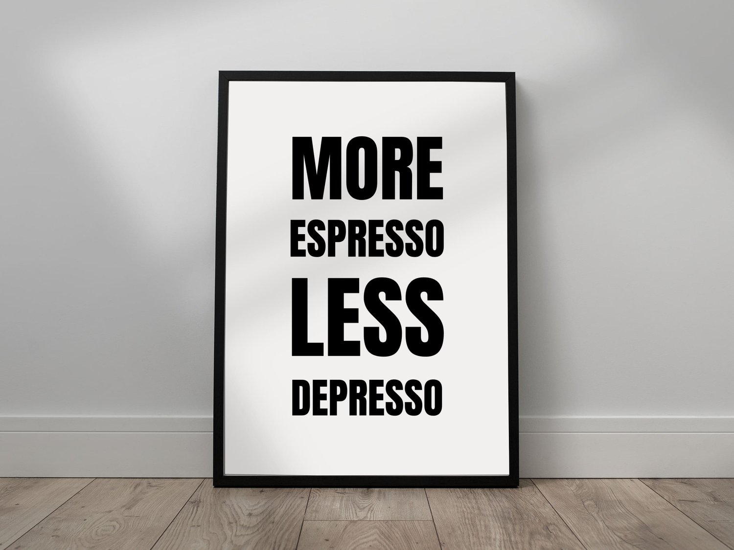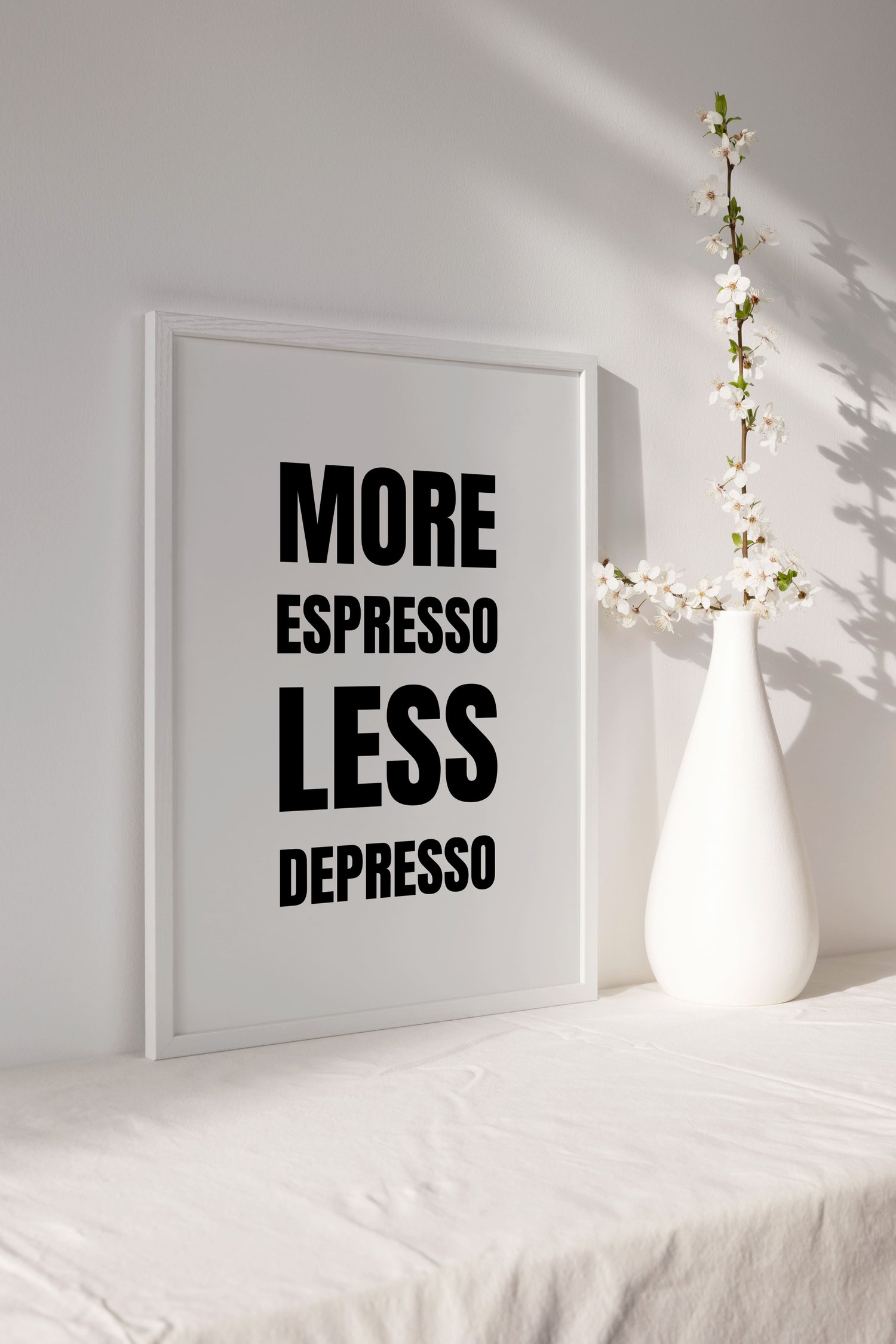More Espresso Less Depresso Printable Wall Art | Minimalist Poster