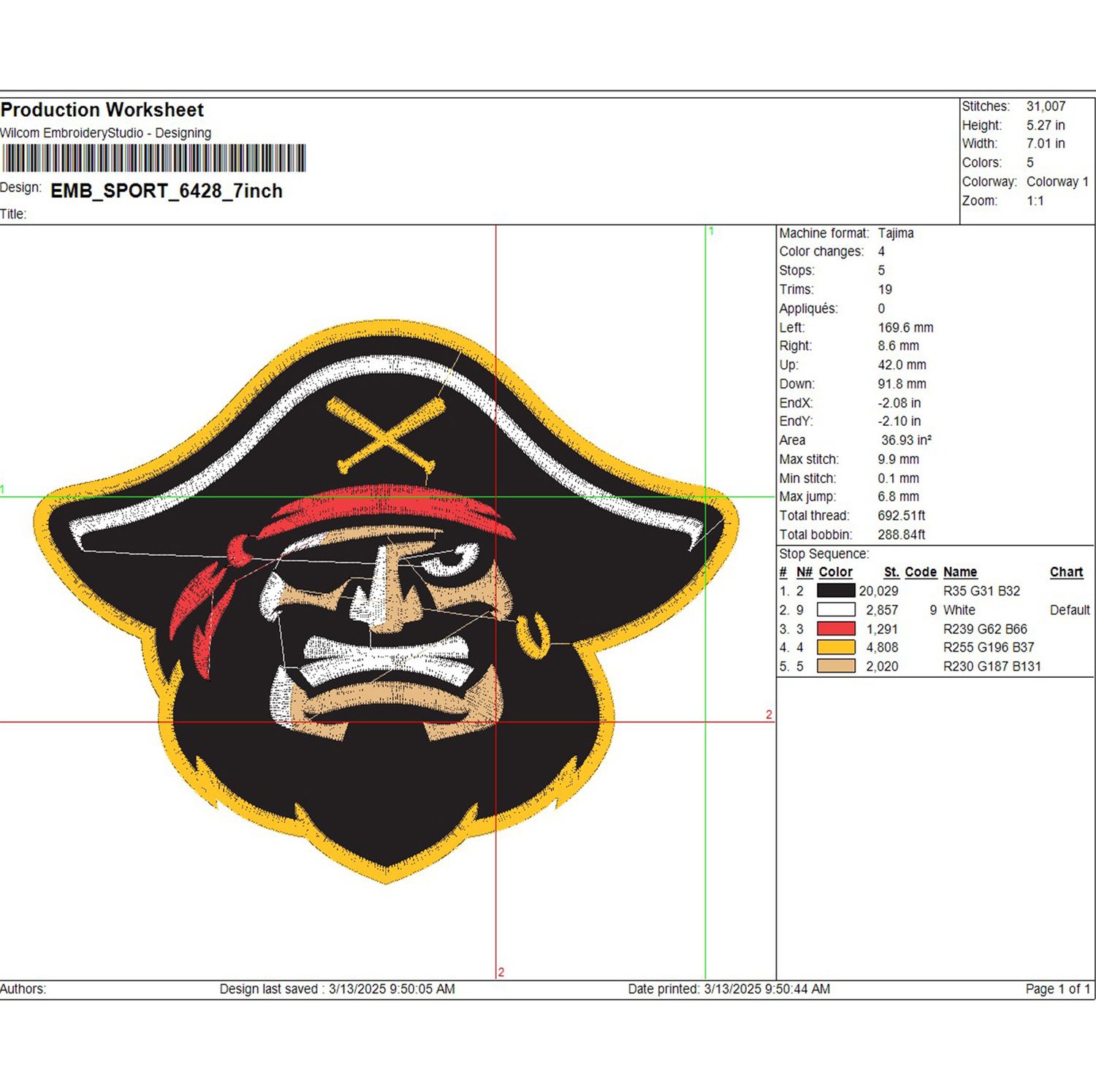 MiLB Bradenton Marauder Logo Embroidery Files, Minor League Baseball Logo Embroidery Designs, MiLB Baseball Teams, 3 sizes, Machine embroidery designs, Digital Download