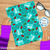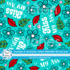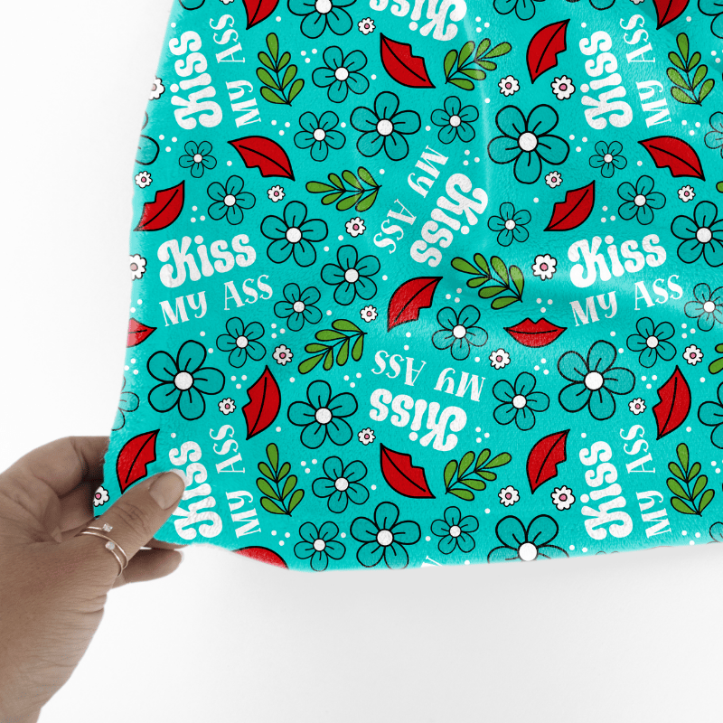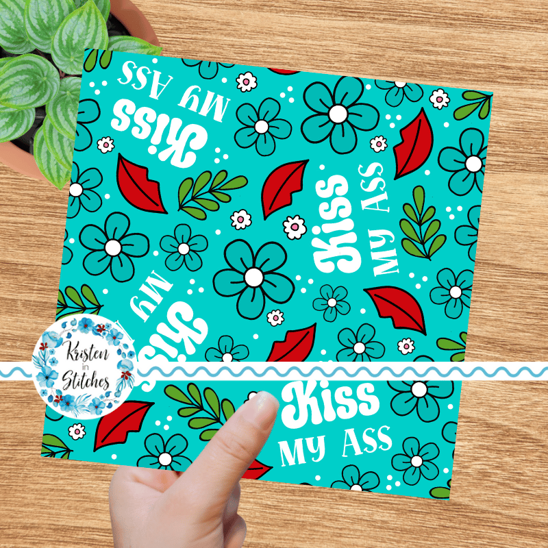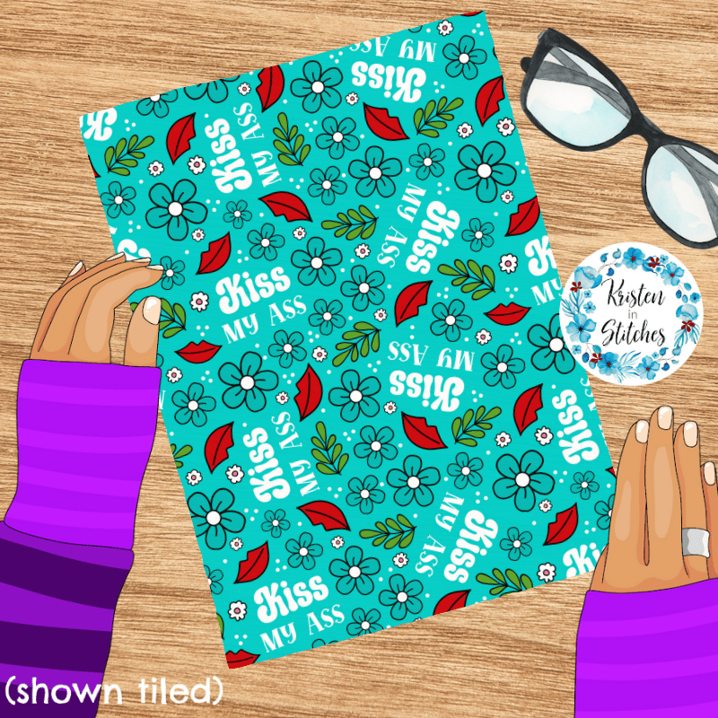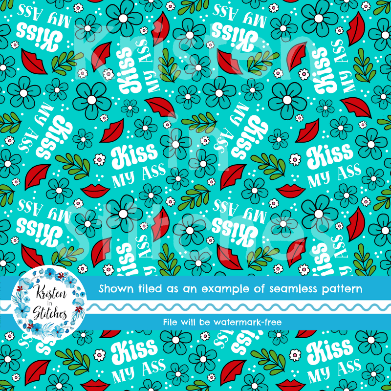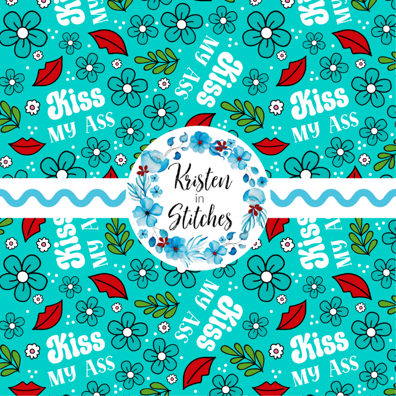 Kiss My Ass floral pattern with flowers in turquoise blue.