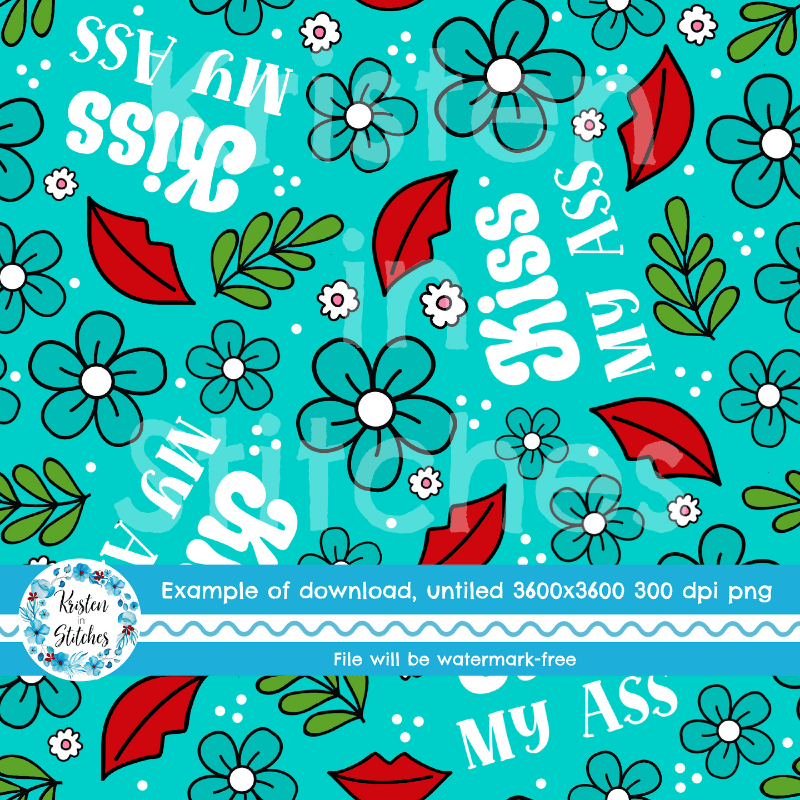 Kiss My Ass Sweary Floral Seamless Pattern, Pretty Profanities