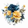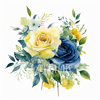 Watercolour Flowers Blue Orange Yellow Printable Set of 8