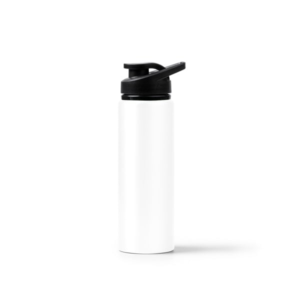 4 White Recycled aluminium bottle with metallic finish. Lid with drinking spout and carry handle. Capacity: 800 ml. Presentation in eco design box