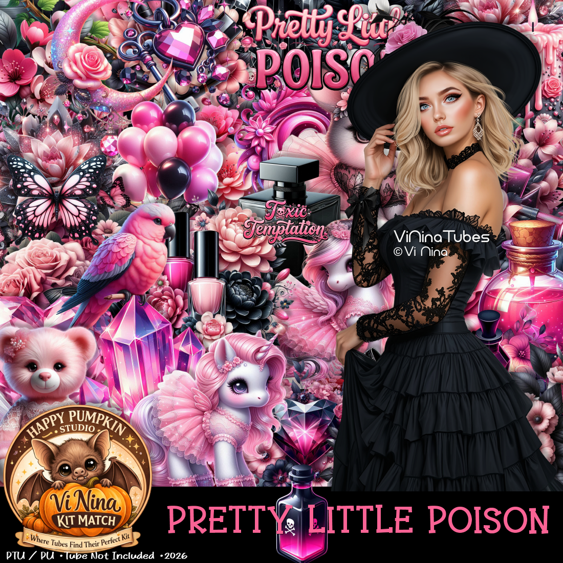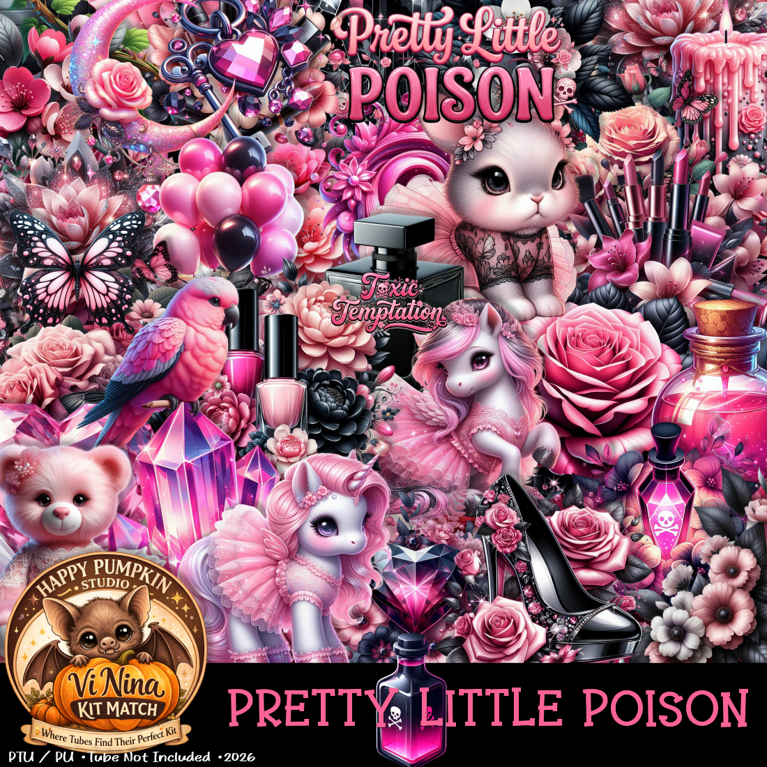 This flirty, high-glam kit blends bold black, candy pink, and soft blush into a dangerously pretty mix of beauty and attitude. Think glossy florals, luxe glam pieces, and just enough edge to keep things interesting… because being nice is overrated.