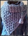 Amarillo Starlight is crocheted as a triangular piece from the bottom tip up. It can be made in any size and can be folded and seamed to create a cowl.