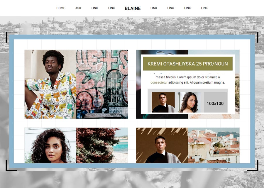 - Navigation: Home, Contact, +6 additional links