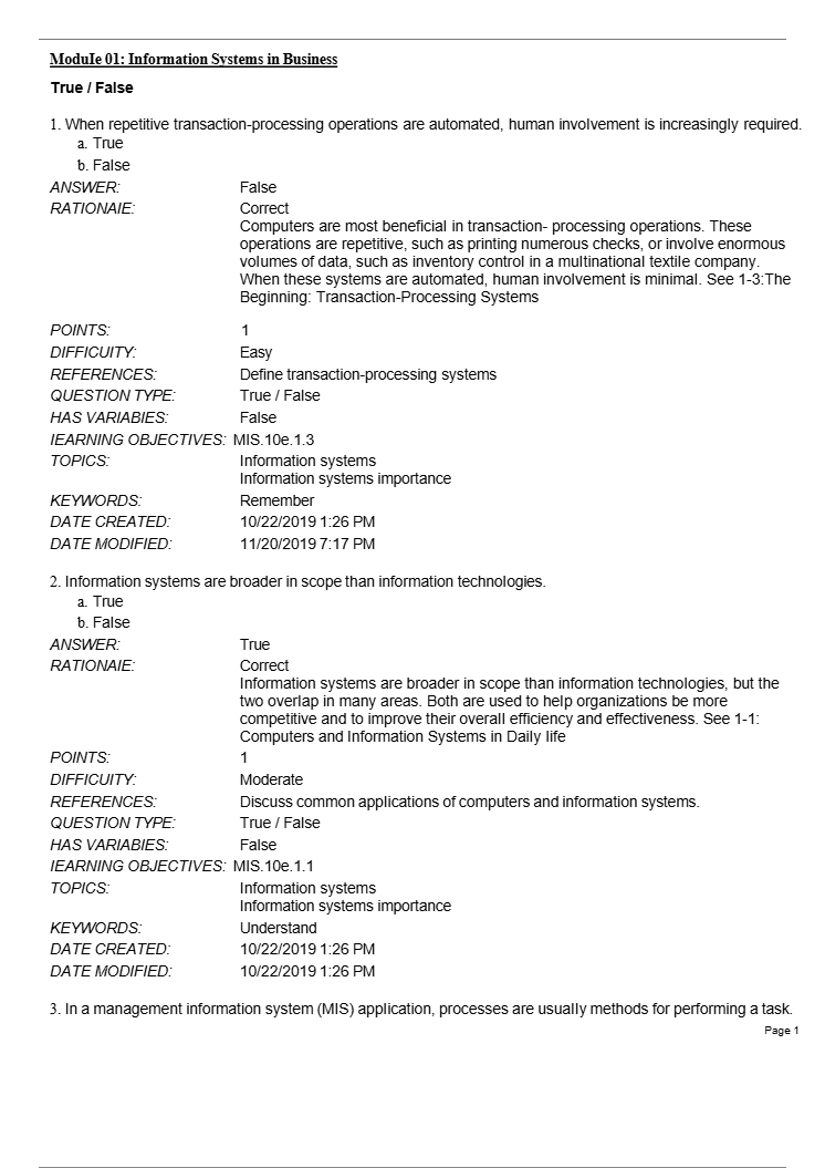This resource provides targeted practice across core MIS concepts to help students reinforce understanding and excel in evaluations: