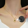 This stunning moon-shaped necklace hides a tiny lens that reveals “I love you” in 100 different languages when you shine a light through it or look inside closely.