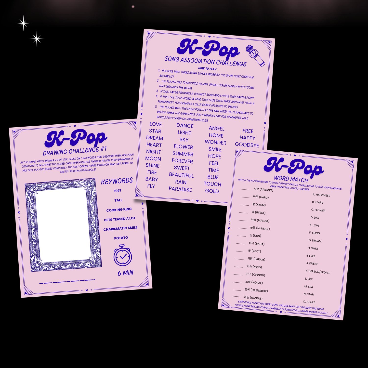 This bundle of 15 printable K-Pop games is perfect for parties, fan meetups, or just a fun night with friends. Packed with trivia, creativity, and fan challenges, these games are designed to celebrate your love for K-Pop idols, songs, and choreographies while creating unforgettable memories!