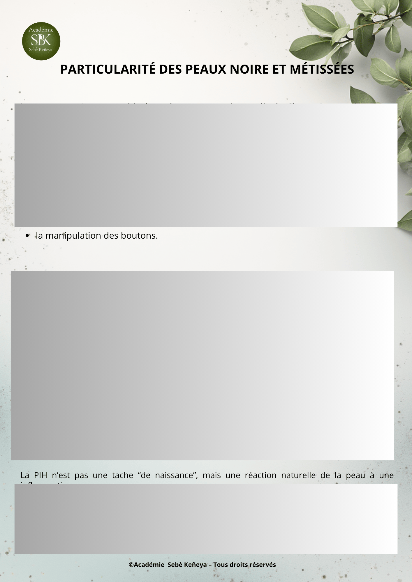 - Des recommandations dermo-sécurisées pour les peaux noires et métissées (hyperpigmentation, P.I.H.).