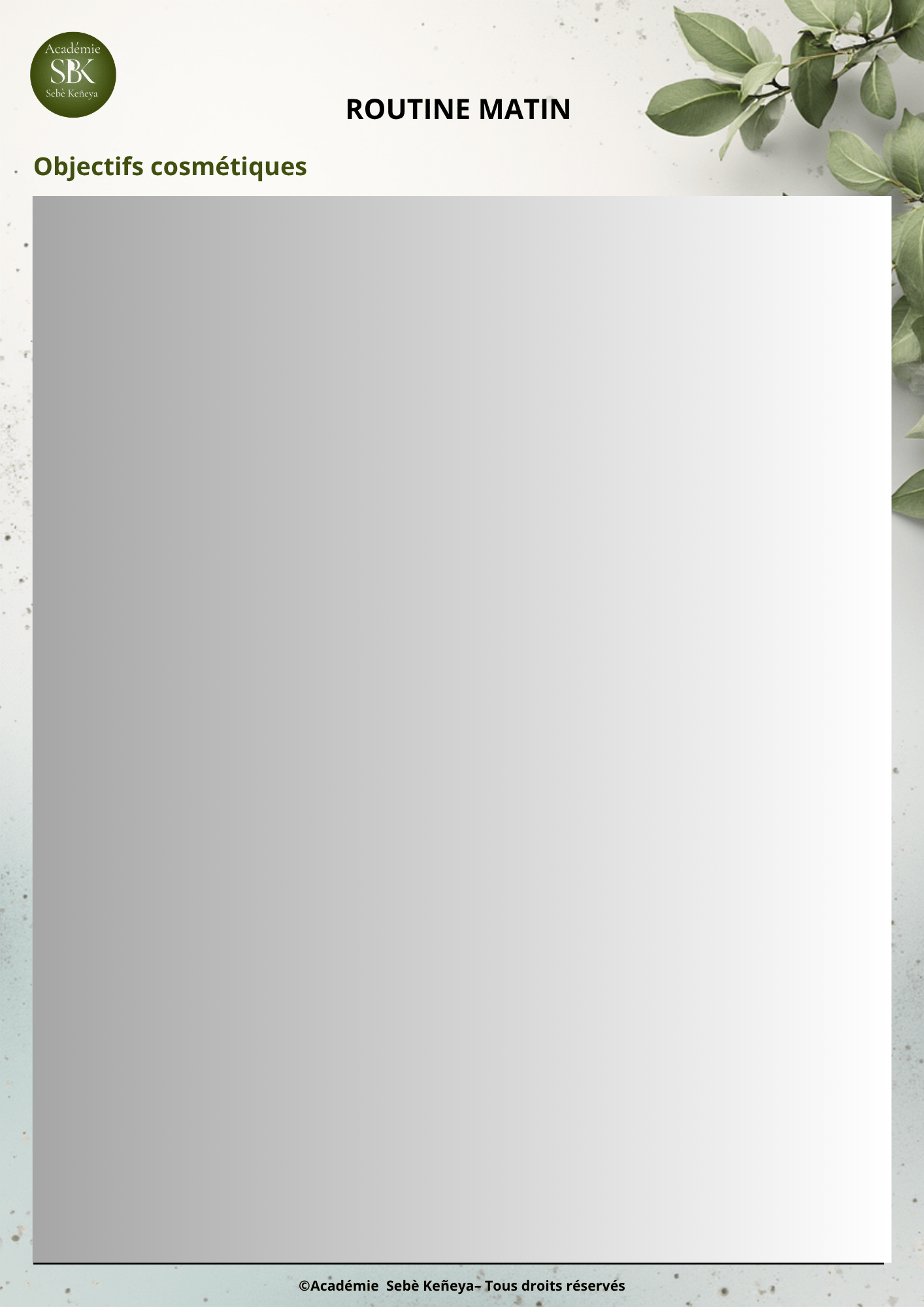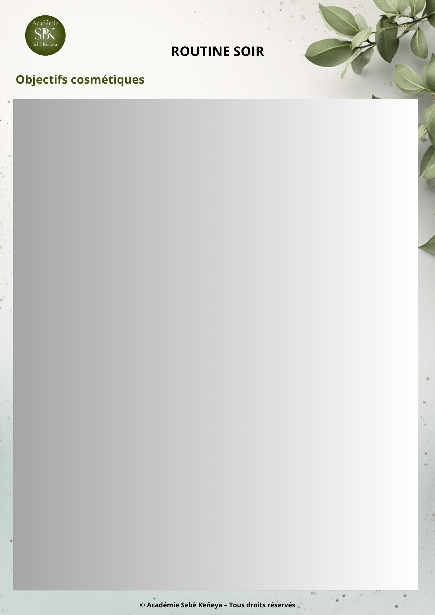 - Une approche Naturo-Cosmétique : routines matin, soir et hebdomadaire, avec actifs adaptés à chaque type de peau.