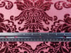 A rich burgundy red velour in an intricate napped damask pattern.