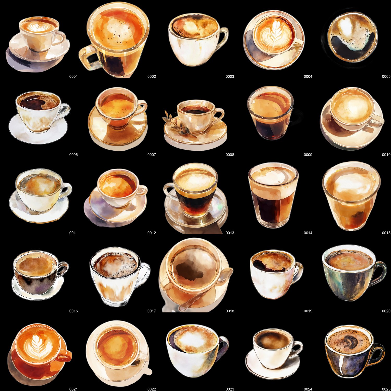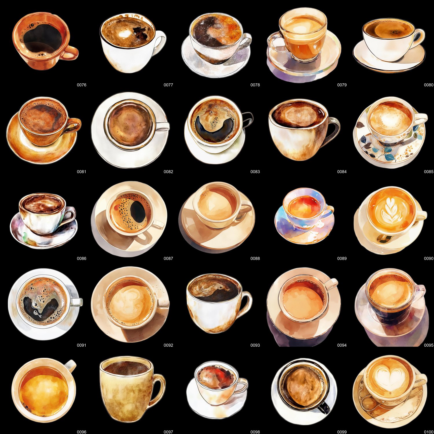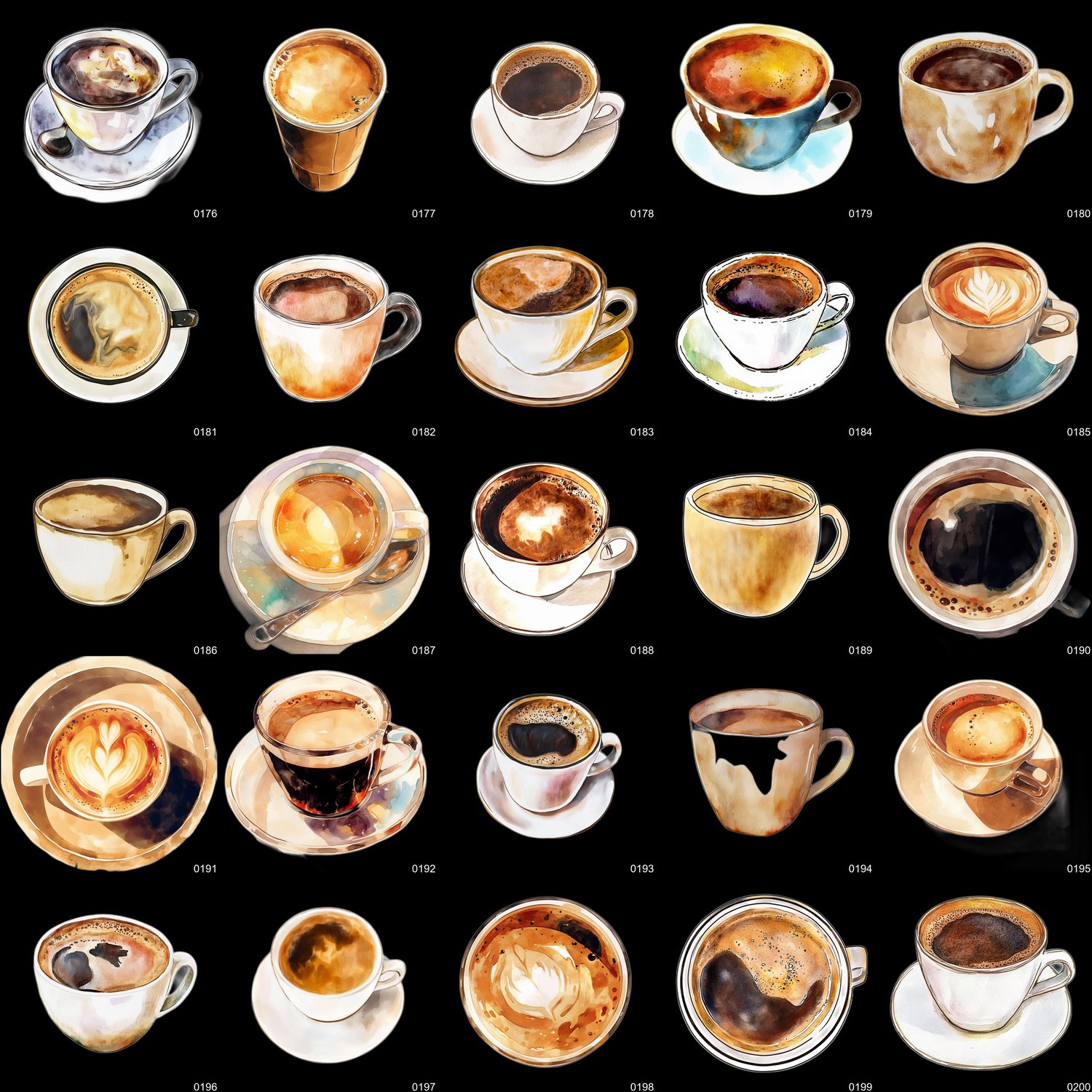 - 300 high-resolution PNG images of watercolor-style coffee (transparent background)