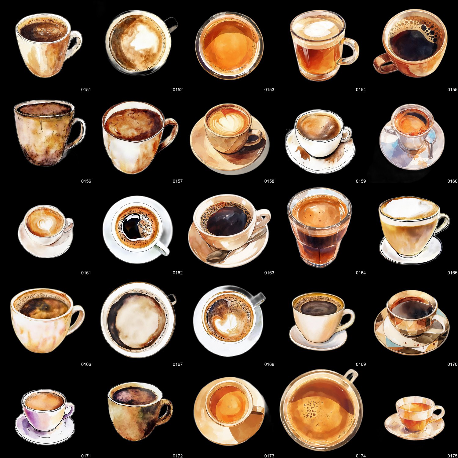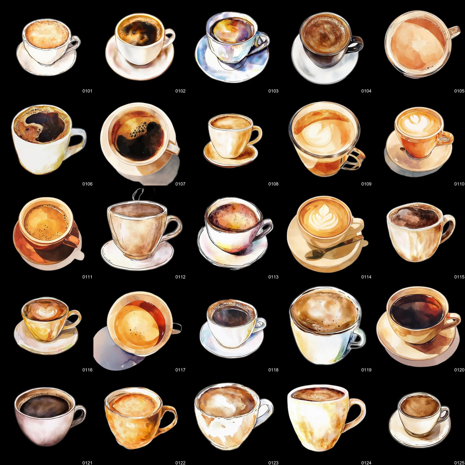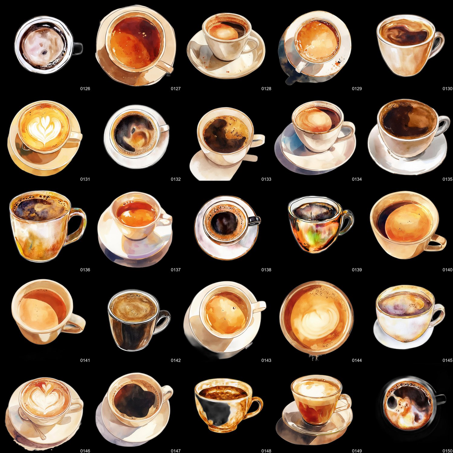 - 300 high-resolution PNG images of watercolor-style coffee (transparent background)