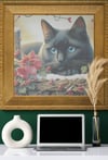 PDF cross stitch pattern, BLACK CAT AT CHRISTMAS, instant download, English/Español