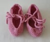 These ballet slippers are knitted in garter stitch and have an i-cord ankle tie.