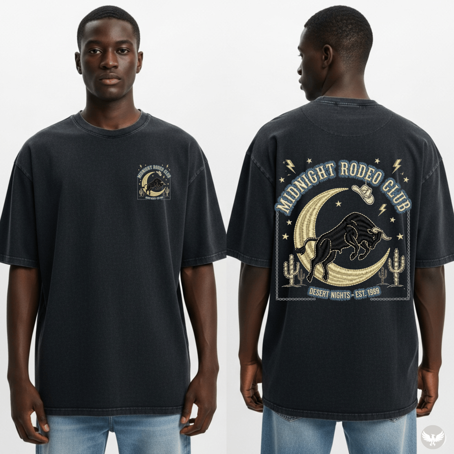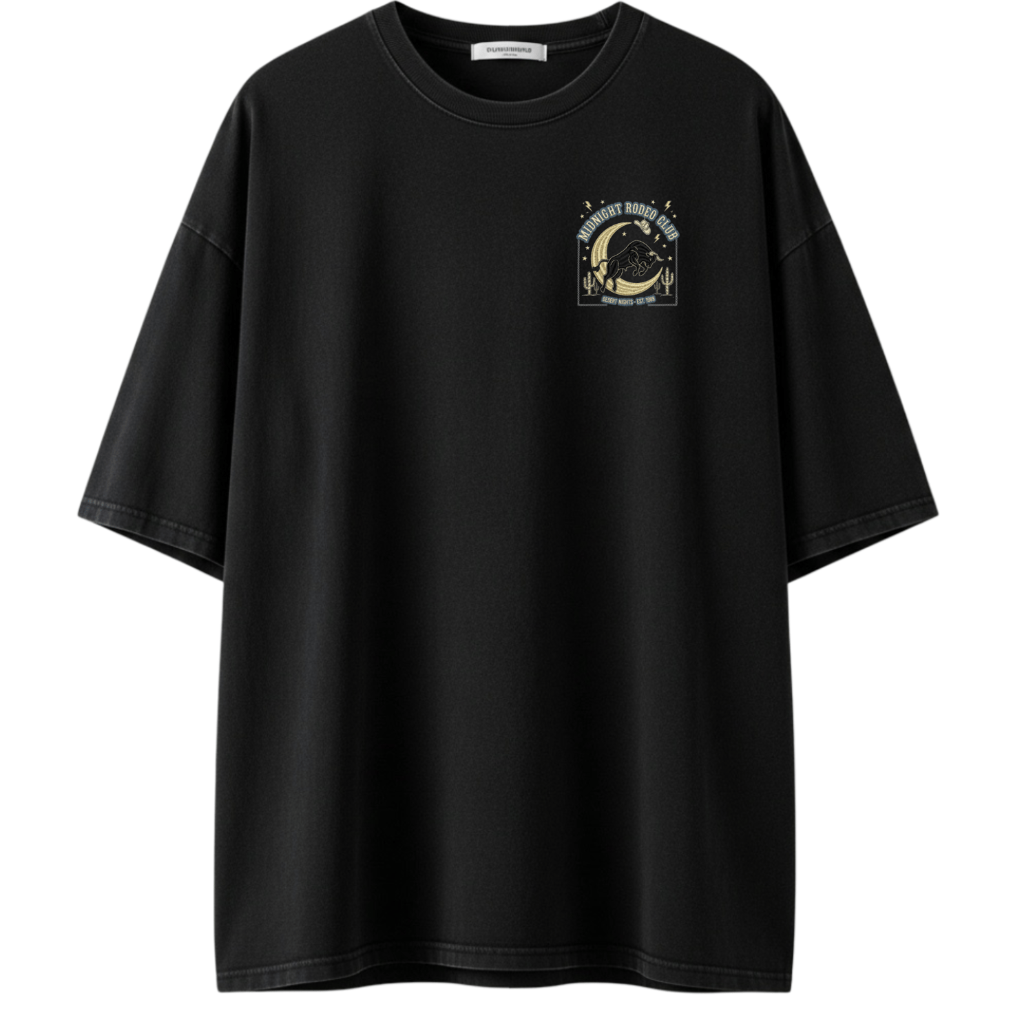🔹 Embroidered “Midnight Rodeo Club” graphic – no print, just threads