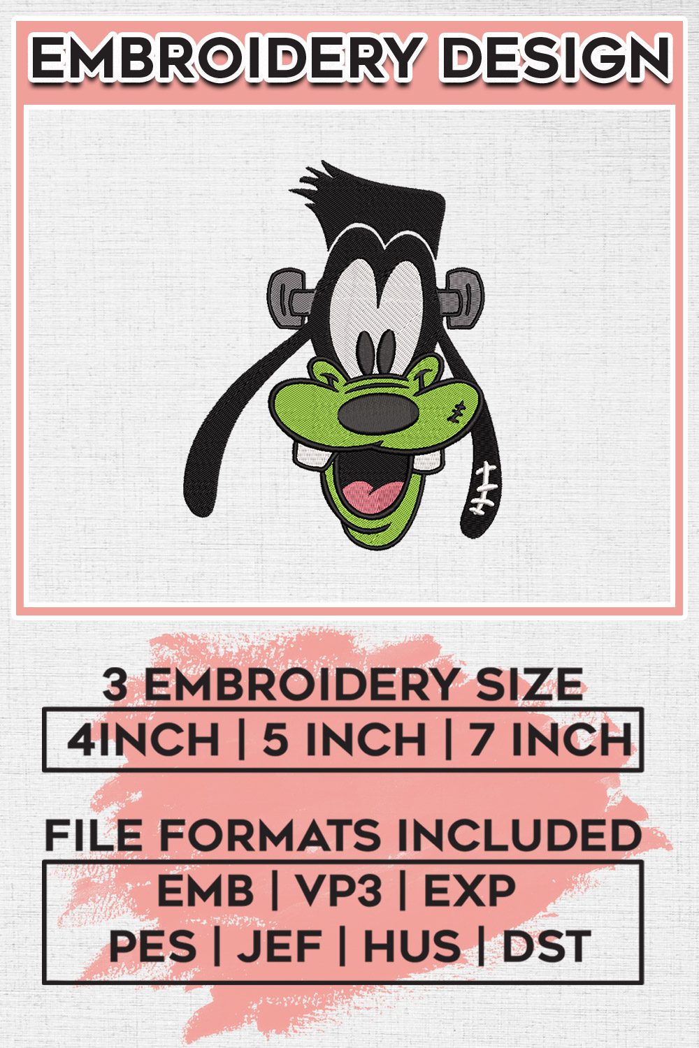 Goofy Frankenstein Head Embroidery Designs, Halloween Embroidery Files, Disney Movie Embroidery, Spooky Season Machine Embroidery Design, Digital Download