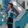 The graffiti has a detail that caught my attention: a diagonal gray stripe containing two white diamonds, similar to two eyes watching you from behind the wall.
