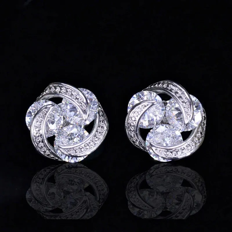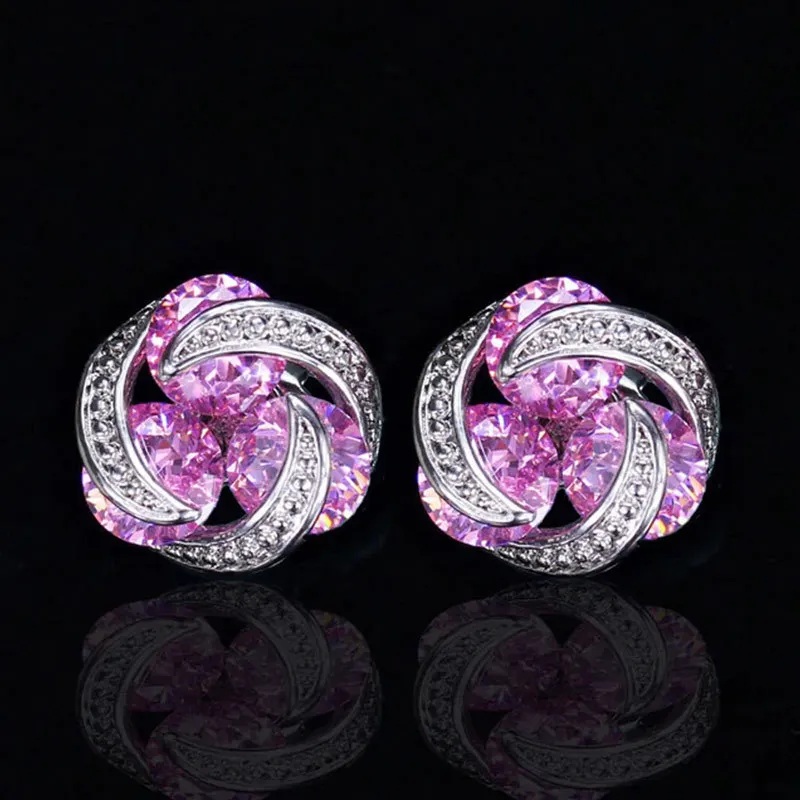 925 Silver Twist Multicolor Zircon Stud Earrings for Women Girls Gift