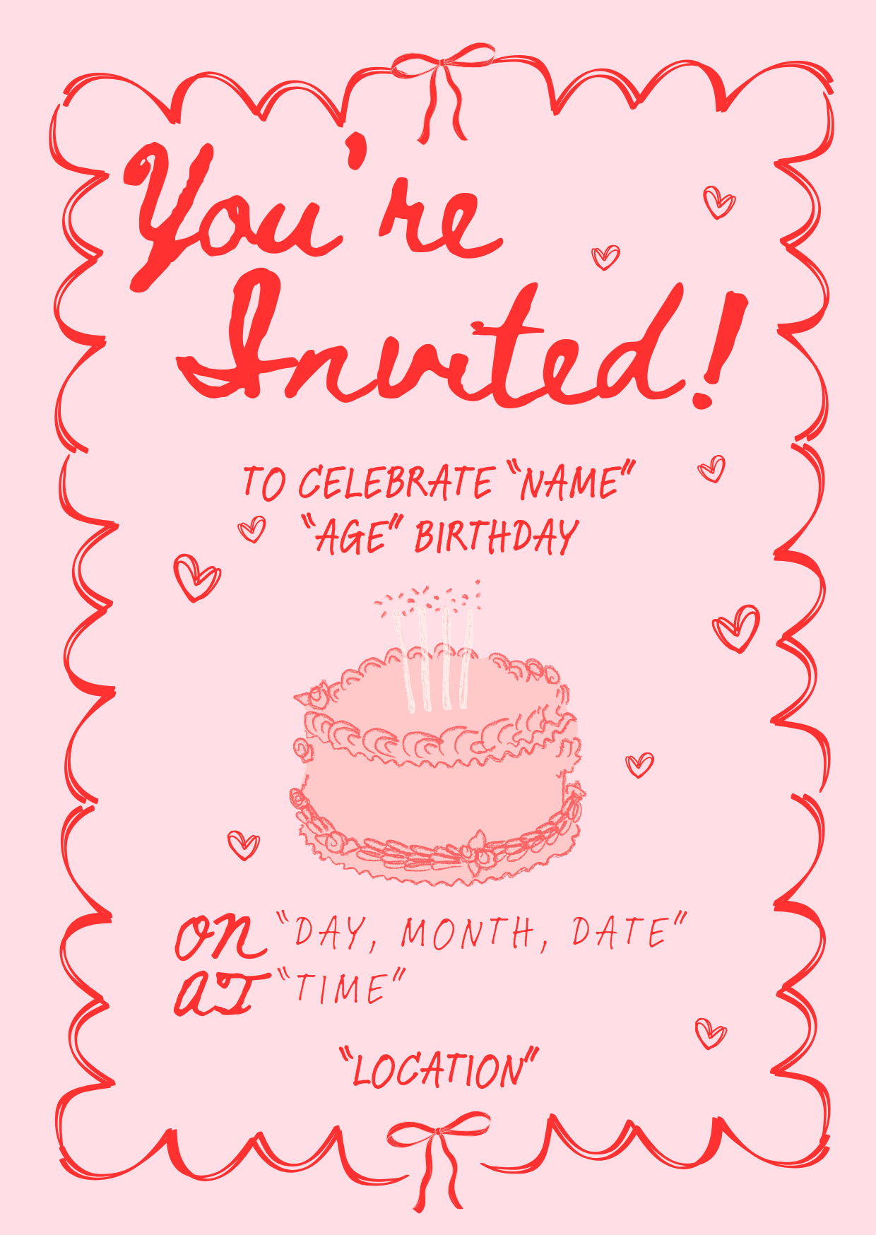 Personalised Pink & Red Birthday Invitation – Digital