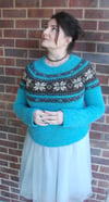 This is a pattern for a jumper worked from the top down and in the round, with a circular yoke, and using the stranded colourwork technique. Yoke, body, and sleeve motifs are charted. Familiarity with charts, using multiple repeats withing a chart, and extending patterning is helpful with this project.