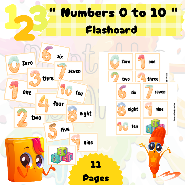 🔢 Numbers 0 to 10 Flashcards – 11 Pages of Colorful Counting Fun!