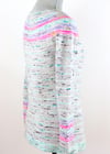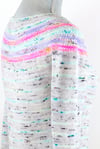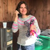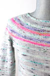 Slips and Stripes is a top down, seamless pullover that contains lots of stockinette on a speckled base and some bright slipped stitches. It is meant to have an easy, straight up and down fit and because it’s top-down you can stop when it’s the perfect length.