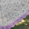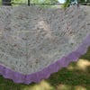 While the wind blows outside, this lacy shawl will keep you warm and toasty inside. Designed to be a companion to a cozy sweater or warm blanket, this piece provides delicate, lacy warmth. It is inspired by undulating waves you will see in multiple motifs throughout the pattern. If you live somewhere warmer, this is a perfect shawl – not overbearing but very snuggly. The circular shape is ideal to wrap over your shoulders and designed for more of a blanket effect than triangular shawls.